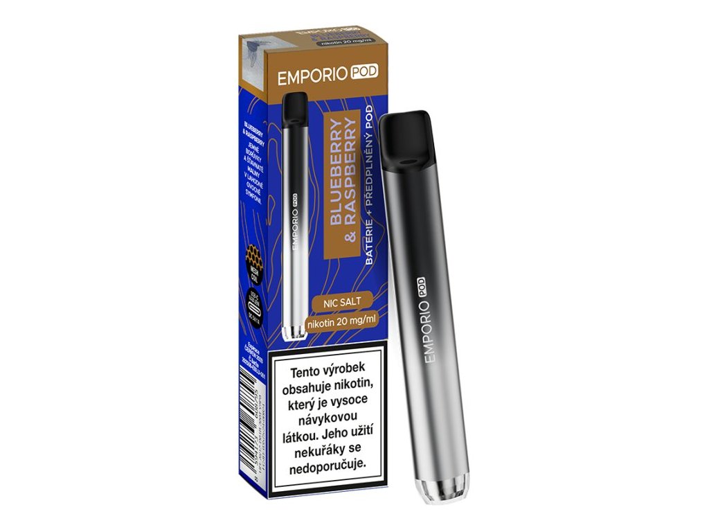 Ovocné propojení borůvky a maliny... Elektronická cigareta EMPORIO POD s dobíjecí baterií o kapacitě 500mAh, USB-C dobíjecím portem a vyměnitelnou cartridgí, která obsahuje 2ml SALT liquidu o síle nikotinu 20mg. Poměr 50VG/50PG.