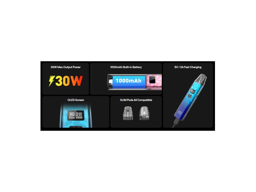 Populární POD systém OXVA Xlim představuje řadu Classic Edition, která vychází z první veleúspěšné řady těchto e-cigaret, avšak nese s sebou prvky nejmodernějšího zařízení. Ergonomické tělo baterie z hliníkové slitiny disponuje integrovaným monočlánkem o kapacitě 1000mAh, který s přehledem vydrží běžnému vaperovi po celý den. O super rychlé nabití se postará USB-C port (5V/2A) umístěný na spodní straně zařízení... více info v detailním popisu
