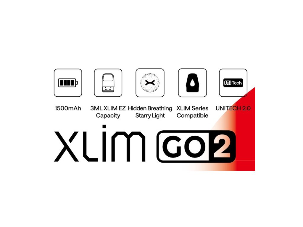 Není určeno pro náplně obsahující nikotin... OXVA Xlim Go 2 Pod Kit – kompaktní a spolehlivý pod systém s integrovanou 1500mAh baterií, výstupem 5–30W a rychlým 2A USB-C nabíjením (80 % za cca 30 min). Kompatibilní se všemi XLIM pods (např. V3, EZ), nabízí únikům odolný top-fill systém, nastavitelné airflow a elegantní „dýchající“ LED indikaci baterie. Ideální pro všední použití — spolehlivost, výkon a pohodlí.... více info v detailním popisu