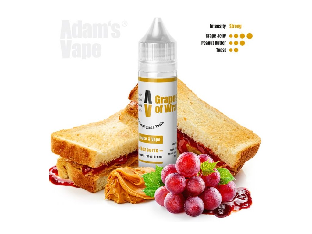 Toast s burákovým máslem a hroznovým jamem... Vyladěné příchutě od českého výrobce Adam´s Vape. Příchutě jsou dodávány v 60ml plastových lahvičkách, které obsahují 10ml koncentrátu. Uživatel tak pouze přidá bázi do lahvičky, zatřese s ní a má hotový e-liquid.... Jedná se o koncentrát, který se kape do báze. Výroba probíhá za nejpřísnějších hygienických standardů ve farmaceutické laboratoři....nejedná se o hotový liquid.