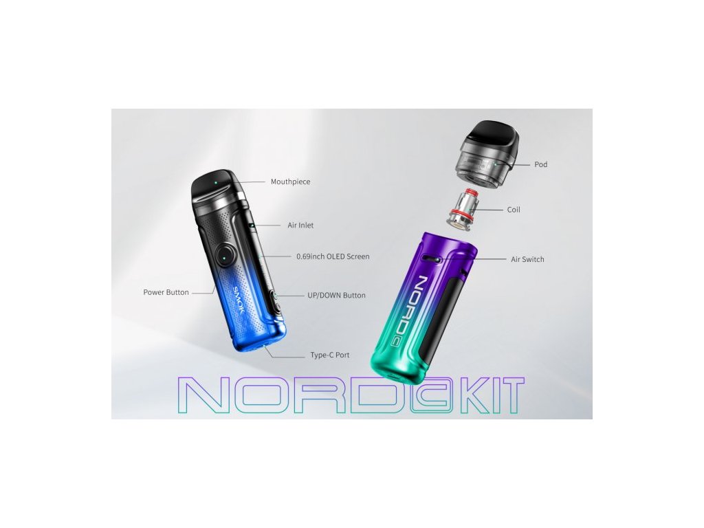 Není určeno pro náplně obsahující nikotin! Smoktech si pro Vás připravil zbrusu nový model elektronické cigarety NORD C, který vás na první pohled zaujme svým futuristickým zpracováním. S tímto ,,parťákem´´ si na cestě vapingu užijete nepřekonatelný DL zážitek za doprovodu té nejlepší chuti liquidu. Kompaktní tělo baterie přináší vestavěný monočlánek o kapacitě 1800mAh, nastavitelný výkon až 50W, inovativní regulaci přívodu vzduchu AFC a rychlé nabíjení pomocí USB-C portu. Na boční straně je umístěn OLED... více info v detailním popisu